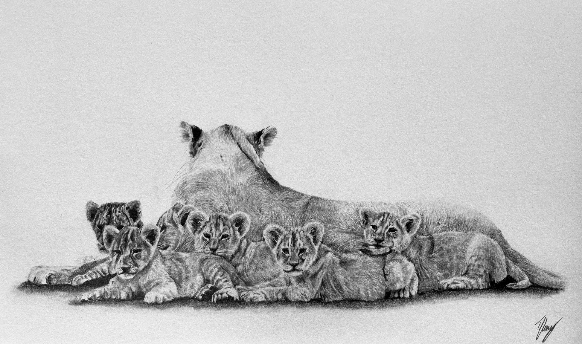 To me, this piece represents the selfless acts of motherhood. The lioness knows she may not live to see her cub’s futures yet she lives to protect and care for them to insure their survival. It is seen throughout the animal kingdom as well as in our life as humans, mothers sacrifice many things to insure the health and safety of their young.
